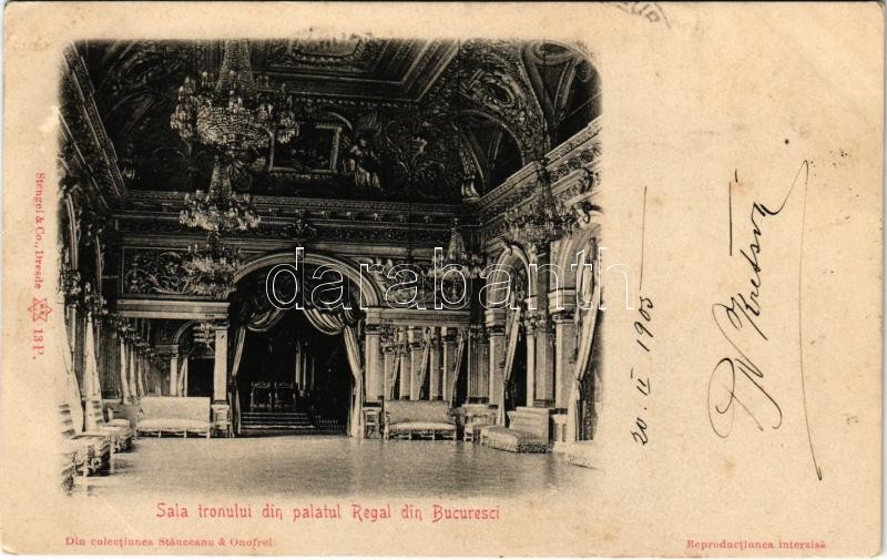 1905 Bucharest, Bukarest, Bucuresti, Bucuresci; Sala tronului din palatul Regal din Bucuresci / throne room in the Royal Palace, interior. Stengel & Co. Din colectiunea Stauceanu & Onofrei (Rb)
