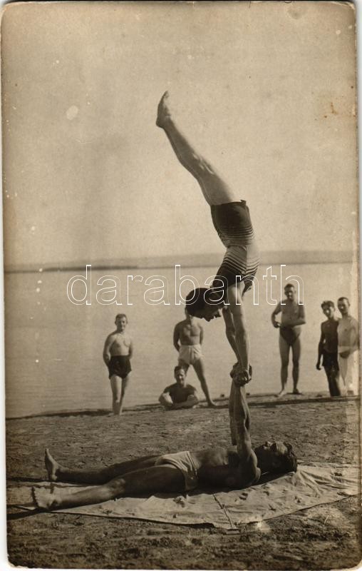 1918 Tornászok a strandon / Gymnasts on the beach. photo (fl) https://www.darabanth.com/hu/402-Gyorsarveres/402.0/Kepeslapok/Sport~1000097/1918-Tornaszok-a-strandon-Gymnasts-on-the-beach-photo-fl~II2470356