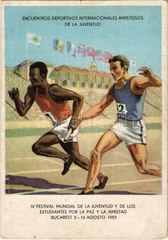 1953 IV. Festival Mundial de la Juventud y de los Estudiantes por la paz y la Amistad, Bucarest / IV. World Festival of Youth and Students for Peace and Friendship, Bucharest (Bucuresti) (gyűrődés / crease)
