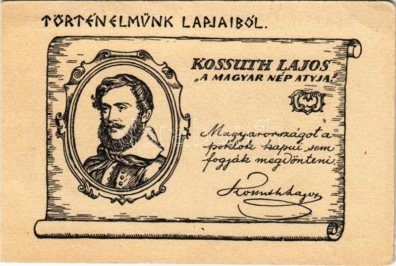 Kossuth Lajos "a magyar nép atyja" Történelmünk lapjaiból. Betűország képeslap kapható a Királyi Magyar Egyetemi Nyomda könyvesboltjában s: Barabás Miklós (EB)