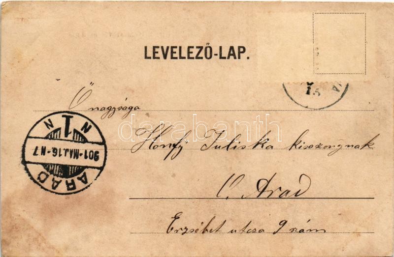 1901 Pancsova, Pancevo; Temes szabályozása kotrógéppel, Kir. Selyem szövés és fonás, fonoda / Timis river regulation with dredger, silk spinning mill and weaving factory. Art Nouveau, floral (r)