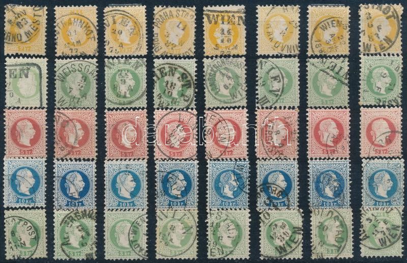 Leírás: Ausztria 1867 40 db bélyeg színárnyalatokkal közte szép bélyegzések