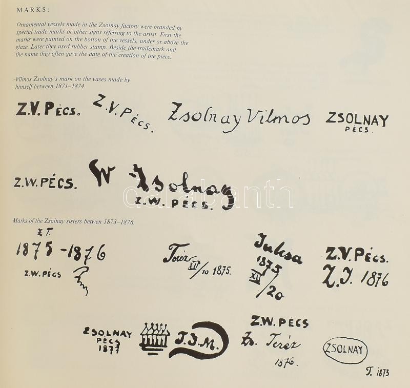 Éva Hárs: The Zsolnay Ceramics. Pécs, é.n., k.n. Nádor Katalin és Kőhegyi Zoltán fotóival illusztrálva. Zsolnay jelzésekkel. Papírkötésben, kissé kopott borítóval, de egyébként jó állapotban.