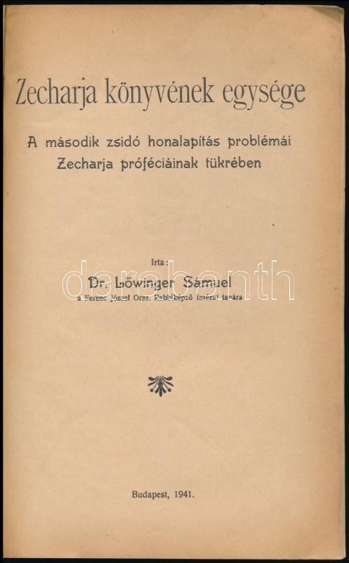 Leírás: Löwinger Sámuel: Zecharja könyvének egysége.