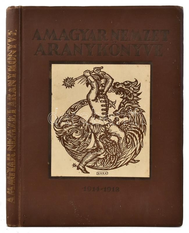 A magyar nemzet aranykönyve. 1914-1918. József főherceg és Szurmai Sándor báró előszavával. Bp., 1921, A magyar nemzet aranykönyve szerkesztőbizottsága. 288 p. Számos fekete-fehér fotóval illusztrálva. Kiadói dombornyomott, aranyozott gerincű egészvászon-kötés, Cservenka és Társa-kötés, kissé kopott borítóval és gerinccel, helyenként sérült, kissé foltos lapokkal, egy kijáró lappal.