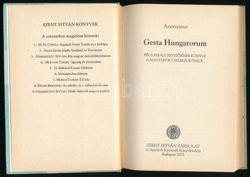 Anonymus: Gesta Hungarorum. Béla király jegyzőjének könyve a magyarok cselekedeteiről. Hasonmás kiadás. Bp., 2003. Szent István. Kiadói kartonált papírkötésben