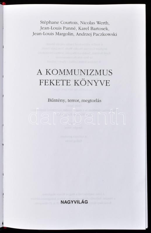 Courtois, Stéphane et al.: A kommunizmus fekete könyve. Bűntény, terror, megtorlás. Bp., 2000, Nagyvilág. Kiadói kartonált papírkötésben, jó állapotban.