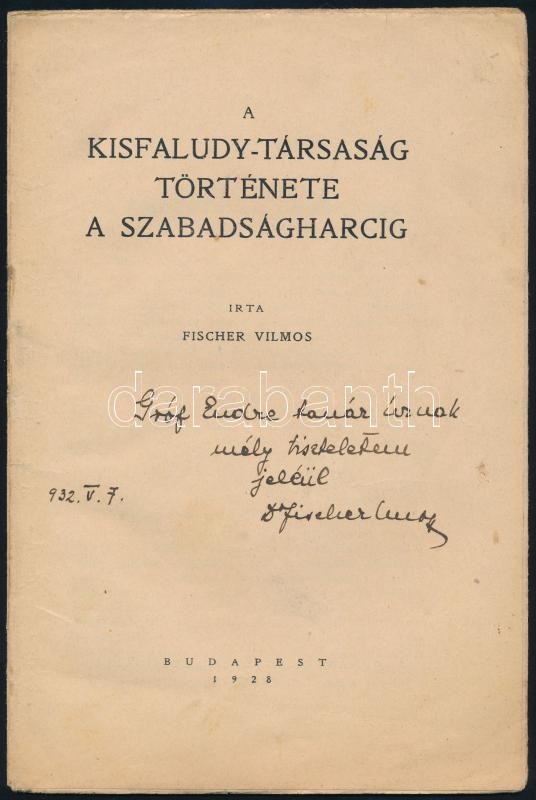 Fischer Vilmos: A Kisfaludy Társaság története a szabadságharcig. Dedi... https://www.darabanth.com/hu/402-Gyorsarveres/402.0/Konyvek/Konyvek-Tortenelem~1500006/Fischer-Vilmos-A-Kisfaludy-Tarsasag-tortenete-a-szabadsagharcig-Dedikalt-Bp-1928-32p-KC3~II2473821