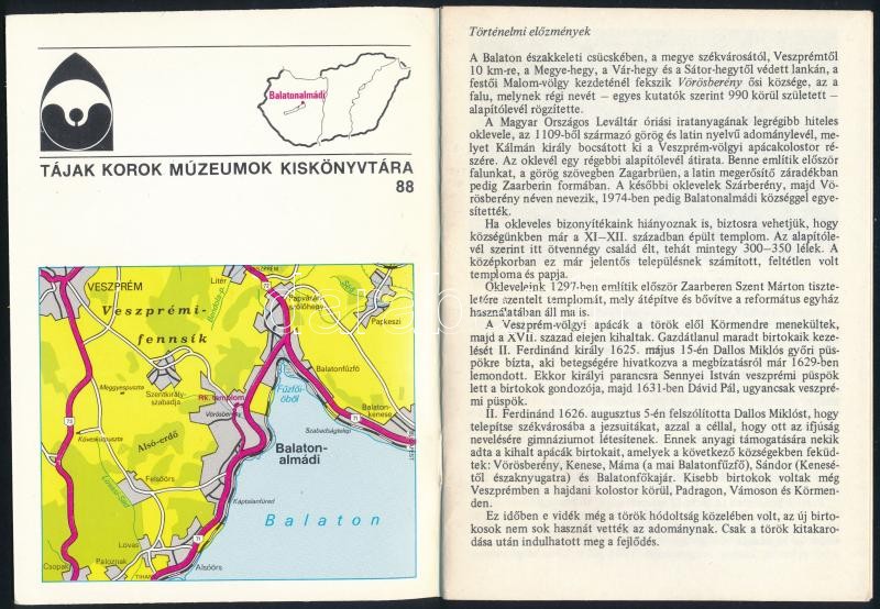 Leírás: Zákonyi Ferenc: Nagyvázsony. Veszprém, 1979., Veszprém Megyei Idegenforgalmi Hivatal. Kiadói papírkötés. + Vörösberény: Plébániatemplom. Tájak-Korok Múzeumok kiskönyvtára 88. Bp., 1981, Tájak-Korok Múzeumok. Kiadói papírkötés.