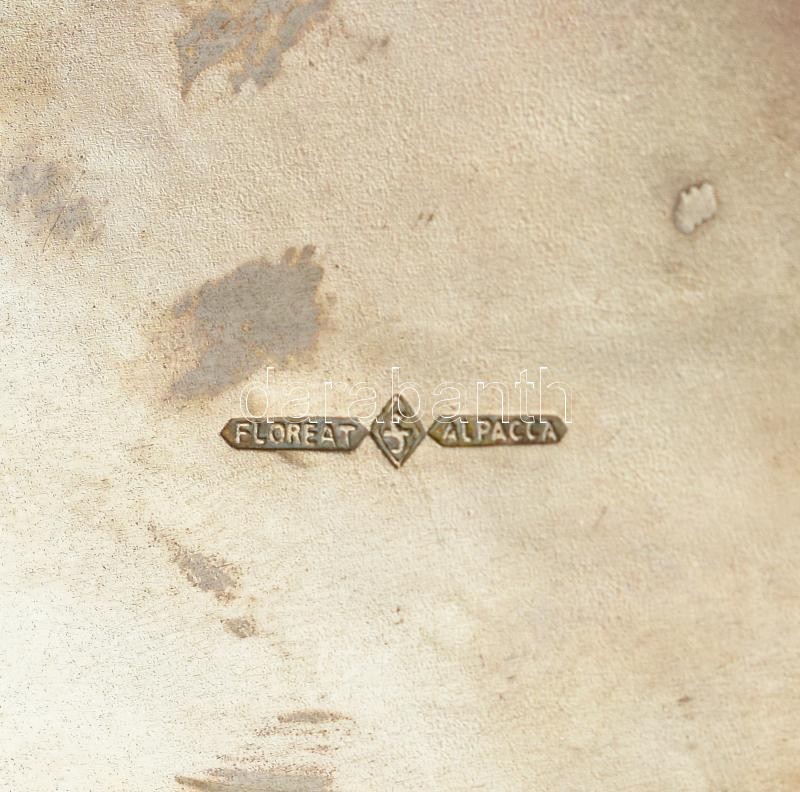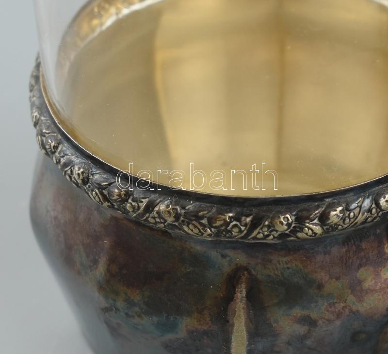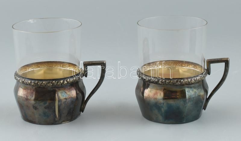 Leírás: 2 db Floreat alpakka teás pohár tartó, kissé csorba üvegbetéttel. Össz m: 9 cm