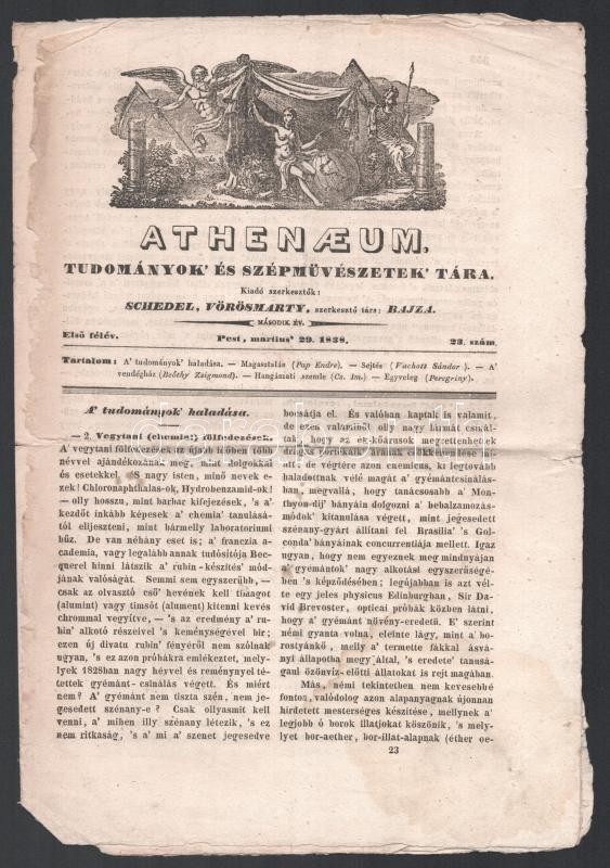 1838 Athenaeum Tudományok és Szépművészetek Tára 23. szám, 8p https://www.darabanth.com/hu/402-Gyorsarveres/402.0/Mutargy-papirregiseg-egyeb/Nyomtatvanyok~500031/1838-Athenaeum-Tudomanyok-es-Szepmuveszetek-Tara-23-szam-8p~II2469780