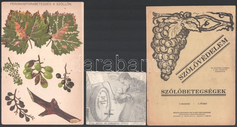 Leírás: Szőlészettel, szőlővédelemmel kapcsolatos nyomtatványok, pl. szőlővessző árlap, 6 db, közte egy grafika