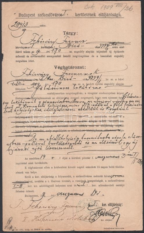 Leírás: 1885-1942 9 db alispáni és polgármesteri hivatali irat