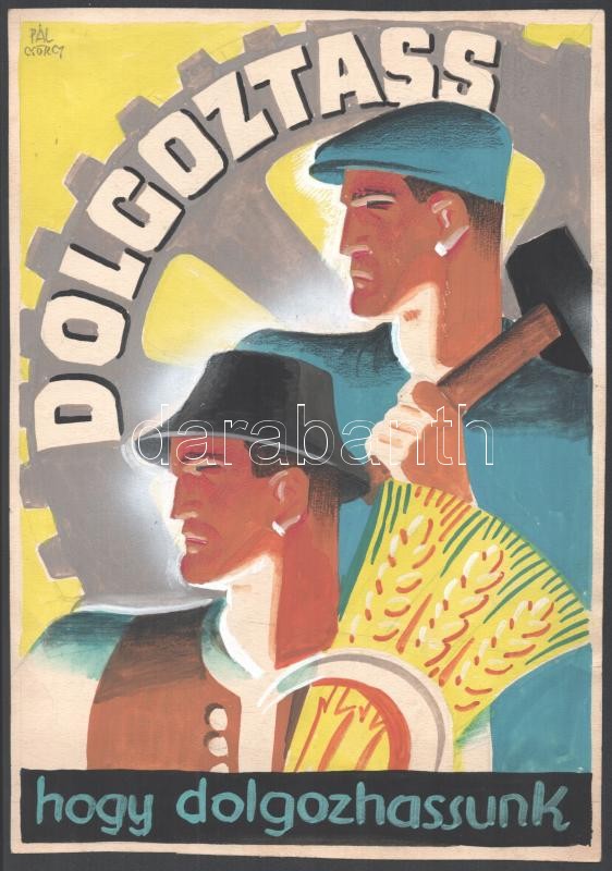 Pál György (1906-1986): Dolgoztass, hogy dolgozhassunk! Plakátterv. Ak... https://www.darabanth.com/hu/402-Gyorsarveres/402.0/Mutargy-papirregiseg-egyeb/Plakat~500032/Pal-Gyorgy-1906-1986-Dolgoztass-hogy-dolgozhassunk-Plakatterv-Akvarell-papir-Jelzett-26~II2474150