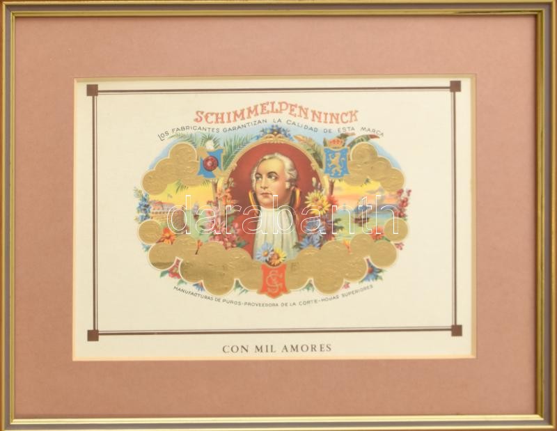 Leírás: Schimmelpennick szivar címke, az eredeti fa doboztető üvegezett fa keretben, paszpartuban, 16x23 cm, 27x33 cm