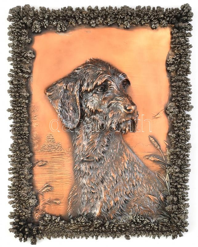 Leírás: Drótszőrű német vizsla, galvanizált fém, Jelzett: F. D. 27x21cm