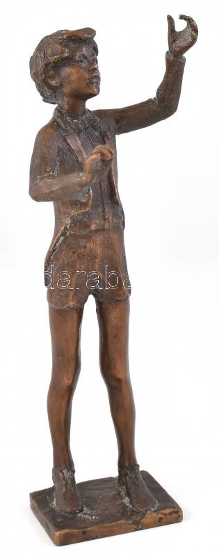 Leírás: Kutas László (1936-): Karmester fiú. Bronz, jelzés nélkül, m:24 cm.