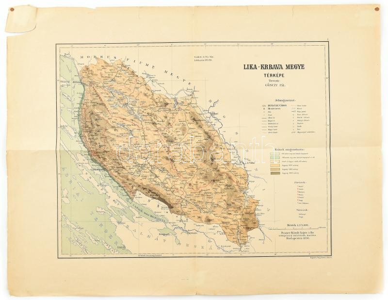 Leírás: cca 1900 Lika-Krbava vármegye térképe Gönczy Pál, 41x37 cm
