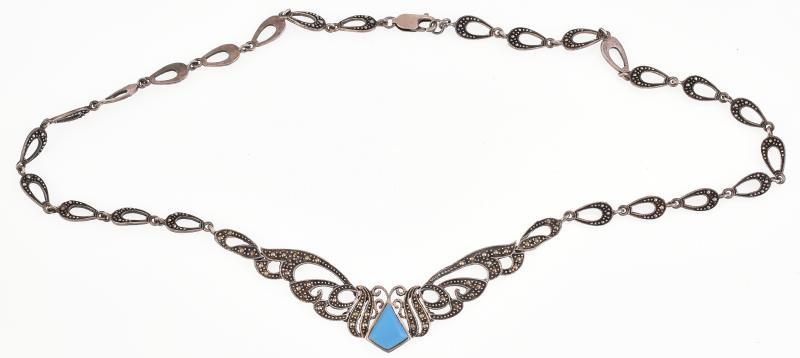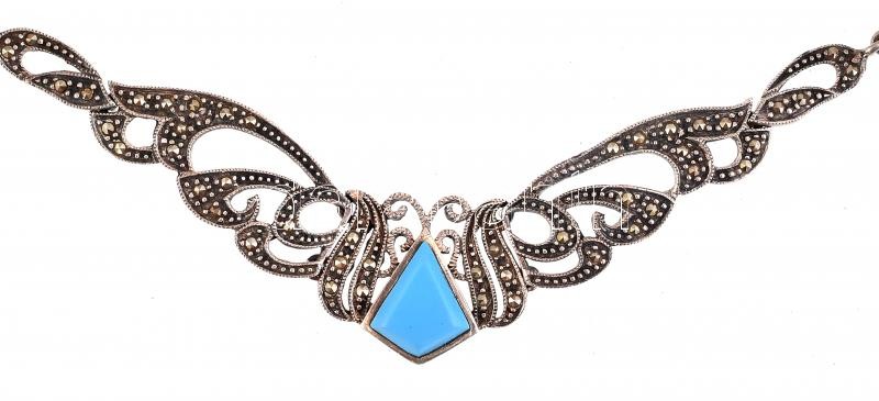 Leírás: Ezüst (Ag) nyakék markazittal és kék kővel, jelzett, bruttó: 24,5 g