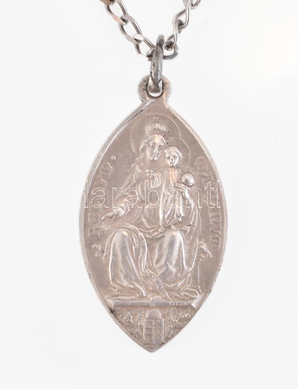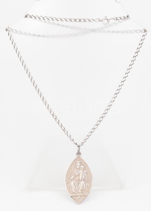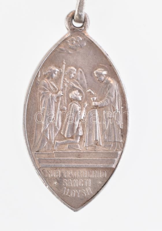 Leírás: Ezüst (Ag) nyaklánc, "Regnum Marianum / Sub Patrocinio Sancti Aloysii" ovális medállal, jelzett, 4,5x2,5 cm, nettó: 24,8 g