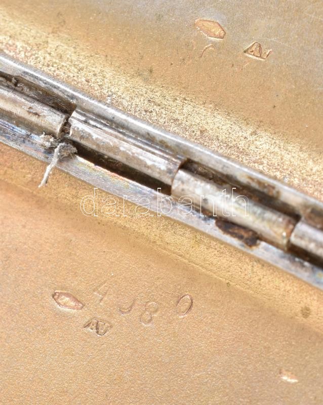 Leírás: Ezüst(Ag) monogramos cigarettatárca, belül ajándékozási felirattal, jelzett, zománcberakással, 8×10 cm, bruttó: 122,16 g