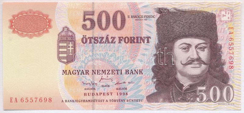 1998. 500Ft "EA" T:I- Adamo F54 https://www.darabanth.com/hu/402-Gyorsarveres/402.0/Numizmatika/Magyar-bankjegyek~2000007/1998-500Ft-EA-TI-Adamo-F54~II2469374