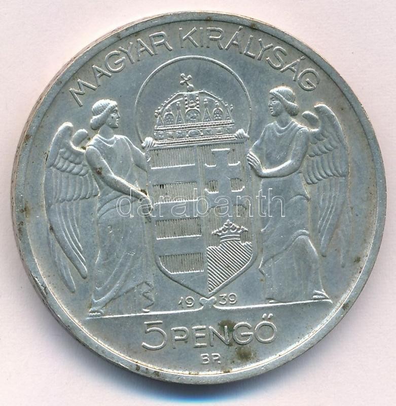 Leírás: 1939. 5P "Horthy balra" Ag T:1-,2 patina, kis ph.-k