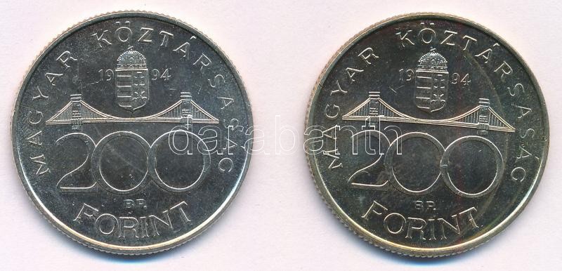 Leírás: 1994. 200Ft Ag "Deák" (2x) T:1- patina Adamo F13.1