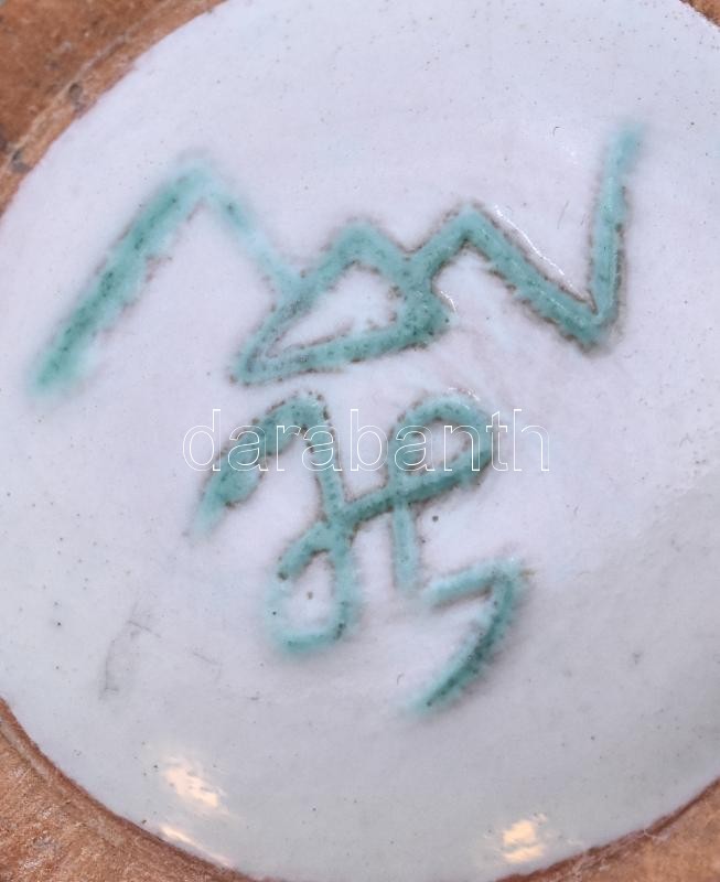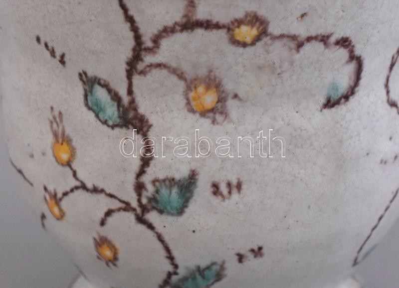 Leírás: Gorka Lívia (1925 - 2011): Népi korai Habán mintás kerámia váza, halszálrepedéssel. Jelzett: GLNV m:9,5cm