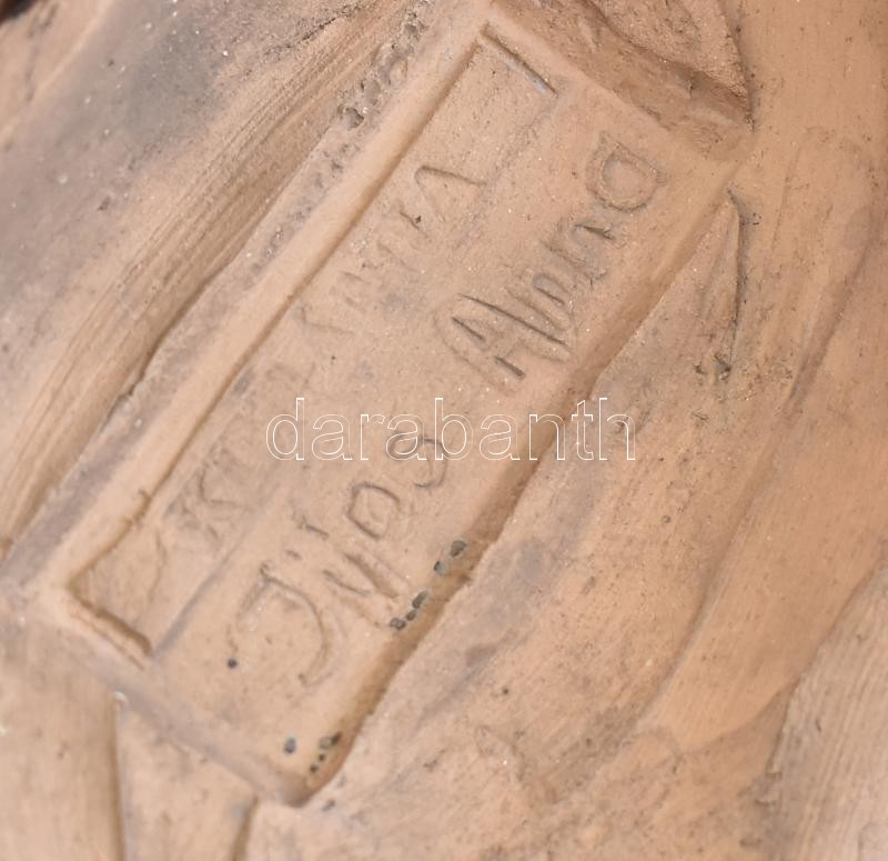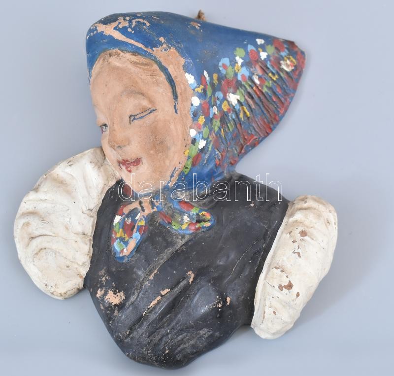Leírás: Illés Anna (?) lány népviseletben, mázas kerámia, káézzel festett, jelzett, 1920-40 körül, kisebb csorbákkal, mázhibákkal, kopásnyomokkal, 13,5x12 cm