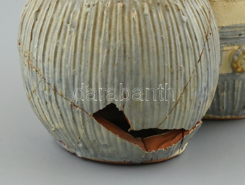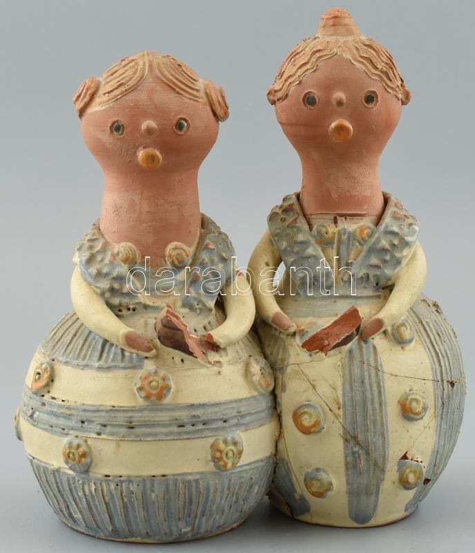 Leírás: Kiss Roóz Ilona (1920-2010): Kórusban, mázas kerámia, kézzel festett, jelzett, sérült, m: 22cm