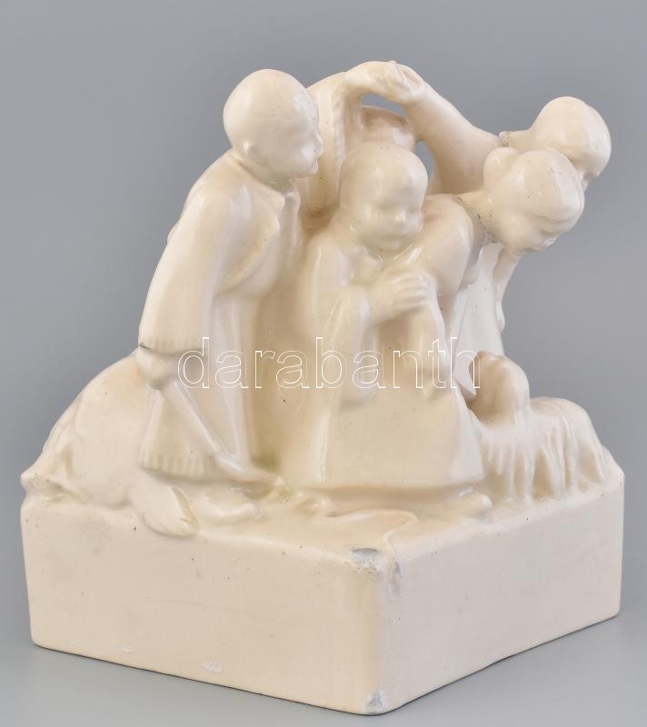 Leírás: Lonkay Antal (1904 - 1963): Eszterlánc 1933. Formába öntött fehér mázas fajansz. Sérült, restaurált. Jelzett: masszába nyomott H.M.V.M.M.T. (Hódmezővásárhely Művészek Majolikatelepe), Lonkay A. 933., valamint etikett. Gyűjtői darab!! m: 22cm