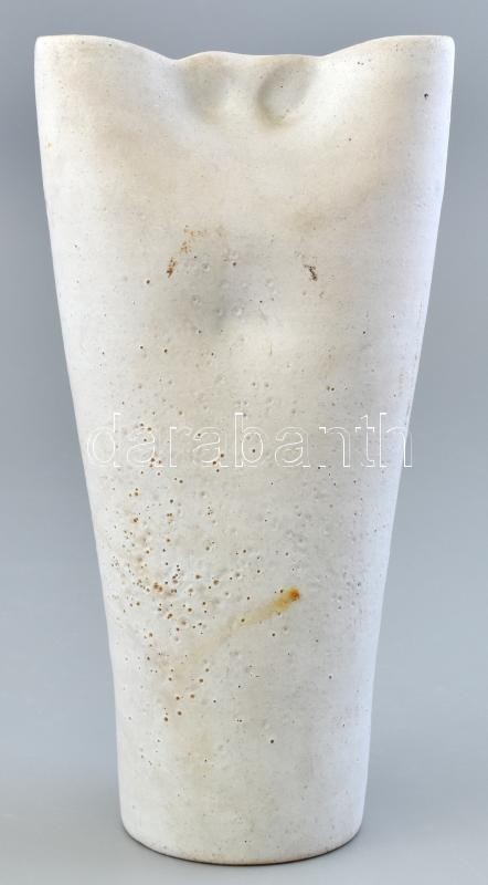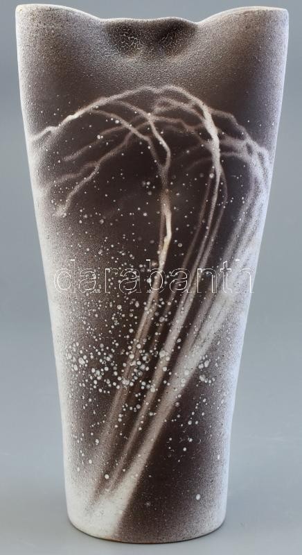 Leírás: M. Kiss Katalin (1941- ): Organikus váza. Fehér és barna mázakkal festett mázas kerámia. Jelzett. Alján apróbb gyári tűzrepedés. m: 24,5cm