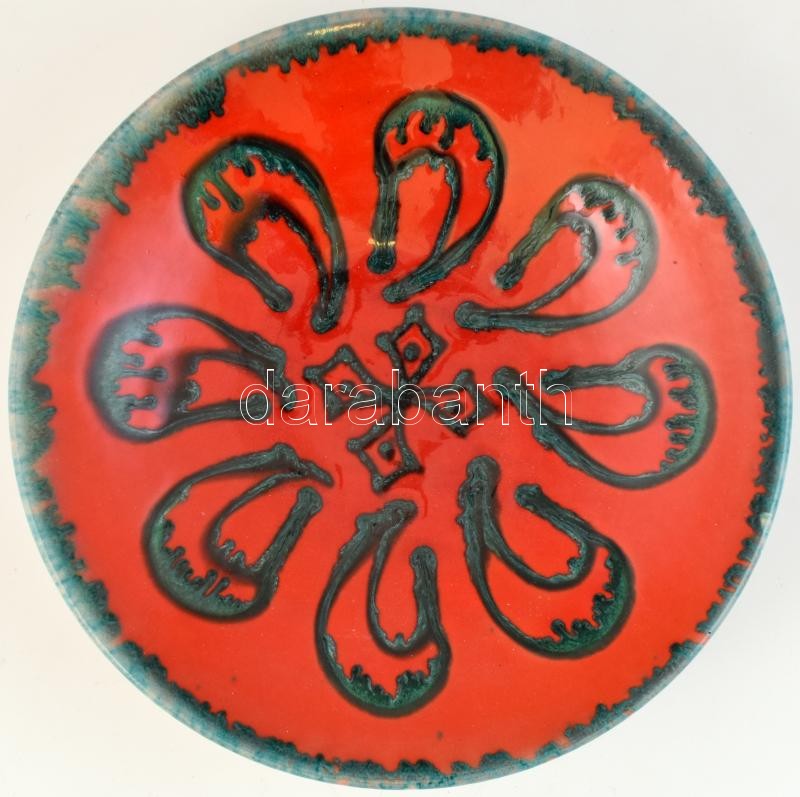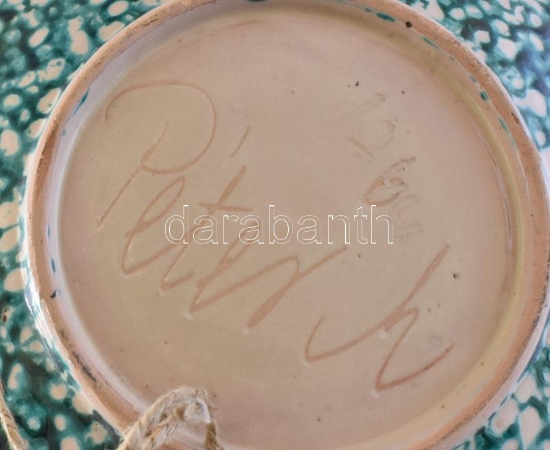 Leírás: Retró fali dísztál Péter M. jelzéssel. Színes mázakkal festett kerámia, hibátlan. d: 29cm