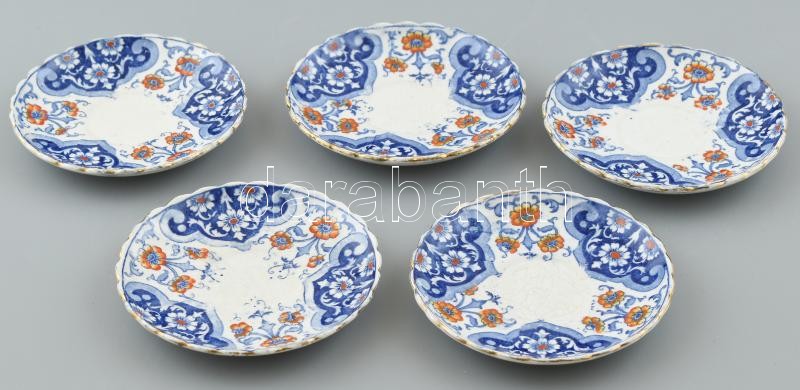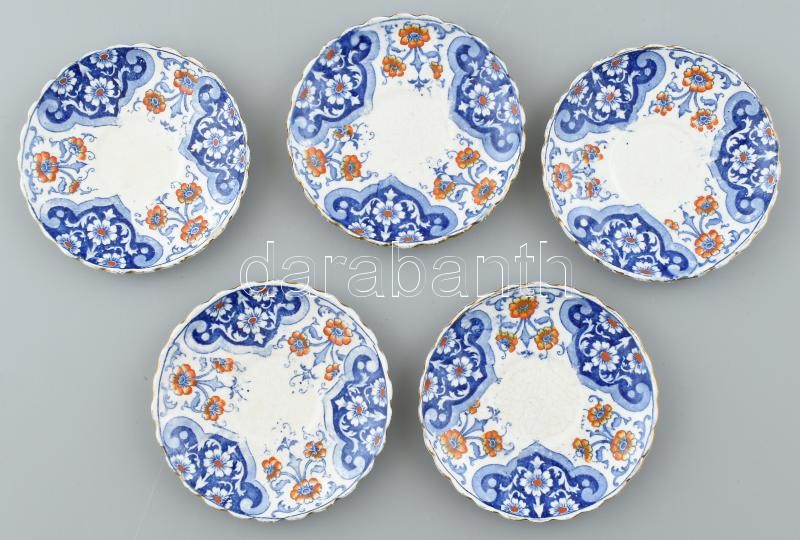 Leírás: 4 db Sarreguemines fajansz tálka. Kézzel festett, jelzett, kis kopásokkal. d: 10 cm