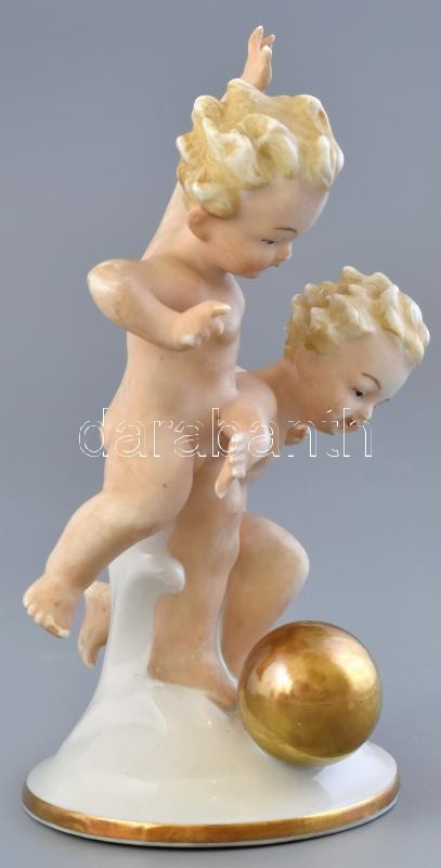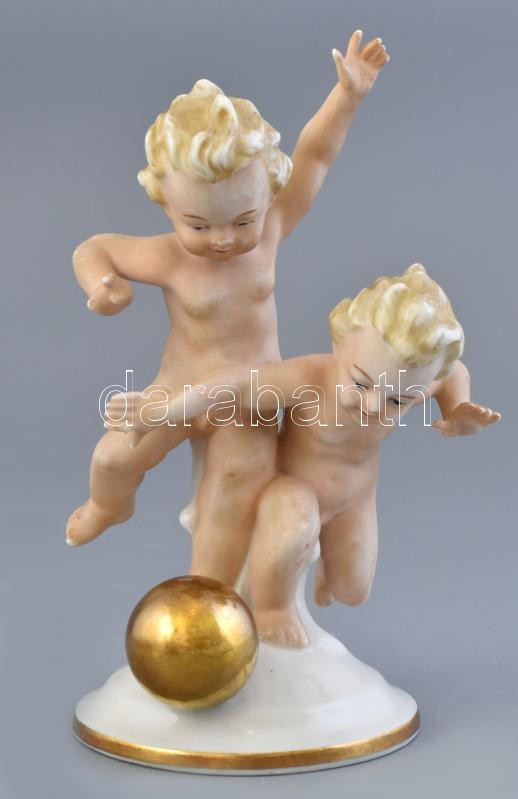 Leírás: Carl Scheidig Grafenthal porcelán kettős putto figura, kézzel festett, jelzett, kopott, m: 18 cm