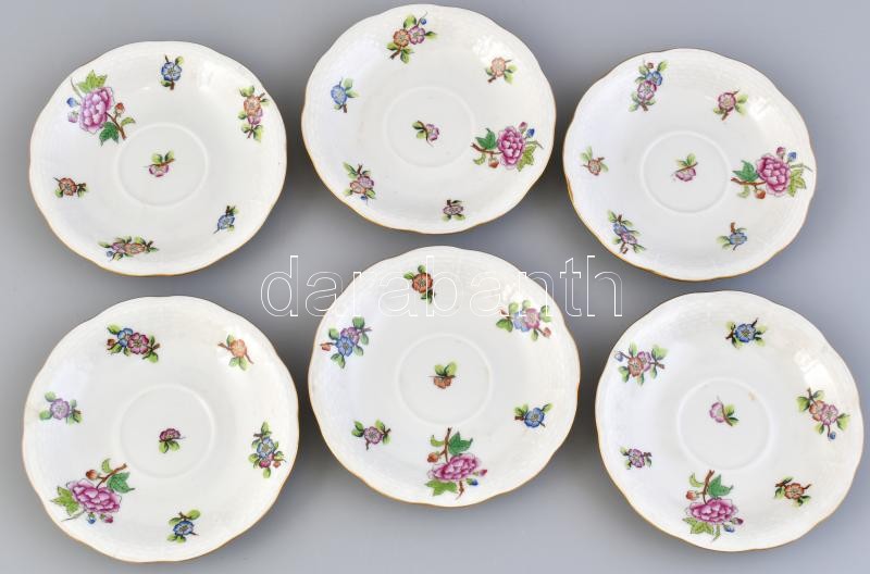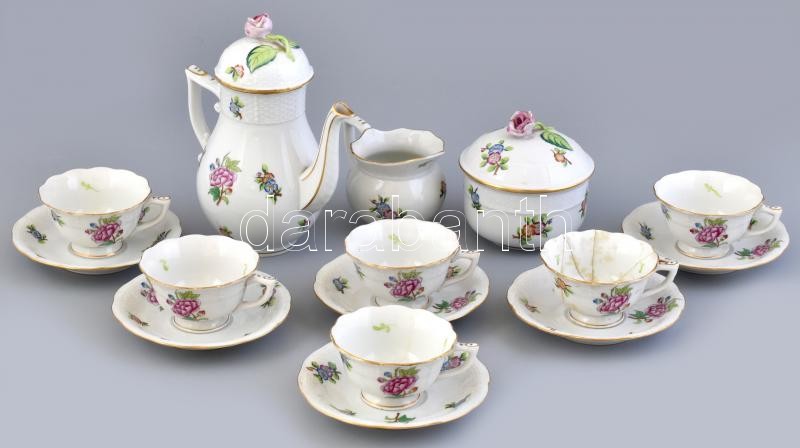 Leírás: Herendi Eton mintás hat személyes mokkás készlet. Kézzel festett, jelzett, erősen sérült, ragasztott, kopott.....