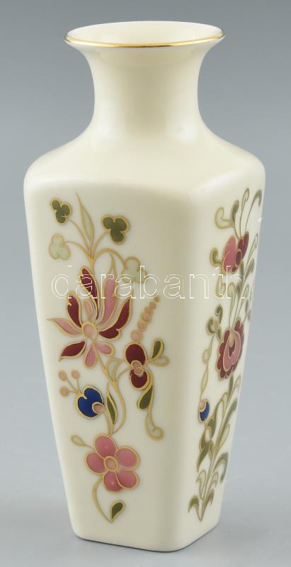 Leírás: Zsolnay virág mintás porcelán vázácska. Kézzel festett, jelzett, hibátlan. m: 14 cm