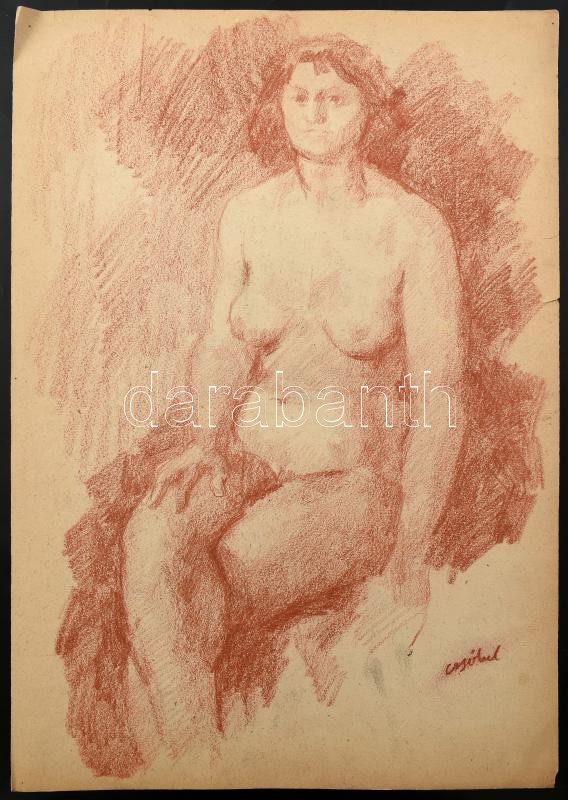 Leírás: Czóbel jelzéssel: Akt. Kréta, papír, lap széle kissé sérült, 43x30 cm