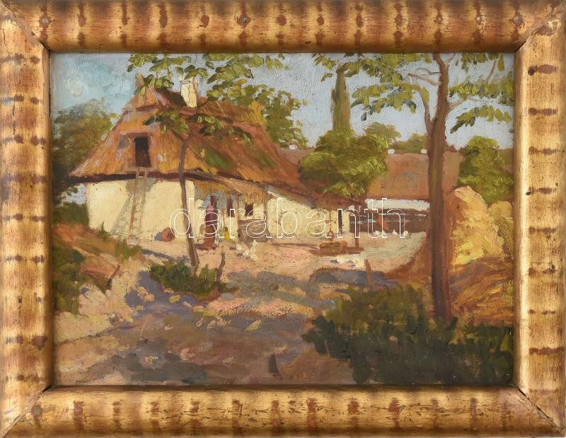 Leírás: Jelzés nélkül: Tanya udvar. Olaj, karton. Keretben 22x33 cm
