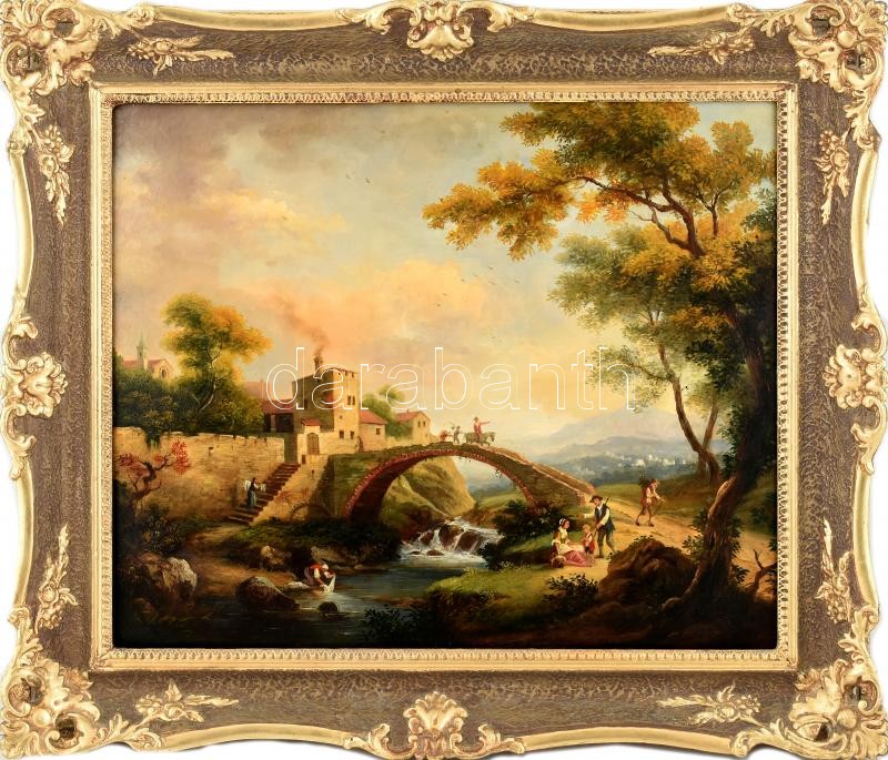 Leírás: Jelzés nélkül: Város szélén. Olaj, fa. Dekoratív fa keretben. 50x60 cm