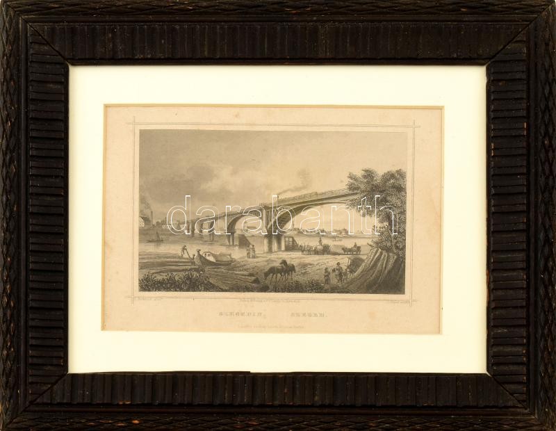 cca 1864 Ludwig Rohbock (1820-1883) - J. Riegel: Szegedin-Szeged. A képen vasúti híddal. Papír, acélmetszet, jelzett a metszeten, 13x17 cm Üvegezett keretben