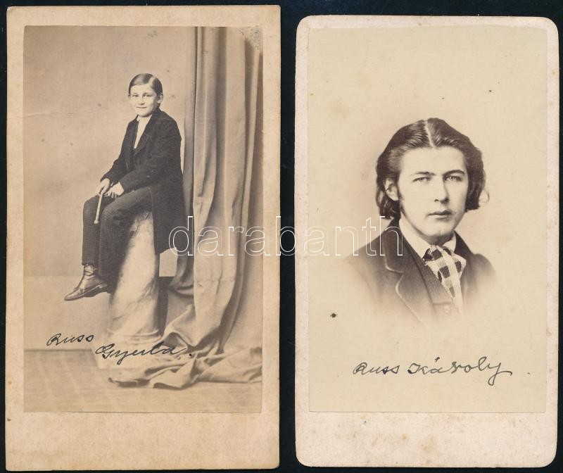 Russ Károly (Karl Russ?) és Russ Gyula vizitkártya méretű képe https://www.darabanth.com/hu/403-Gyorsarveres/403.0/Fotomuveszet/Foto~500019/Russ-Karoly-Karl-Russ-es-Russ-Gyula-vizitkartya-meretu-kepe~II2485218