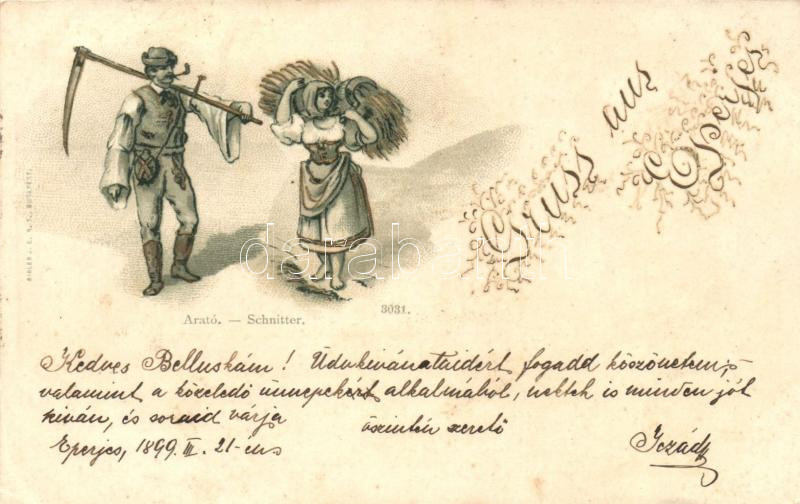 1899 Arató / Schnitter / Reaper, Hungarian folklore, litho https://www.darabanth.com/hu/403-Gyorsarveres/403.0/Kepeslapok/Folklor~1000056/1899-Arato-Schnitter-Reaper-Hungarian-folklore-litho~II1243646