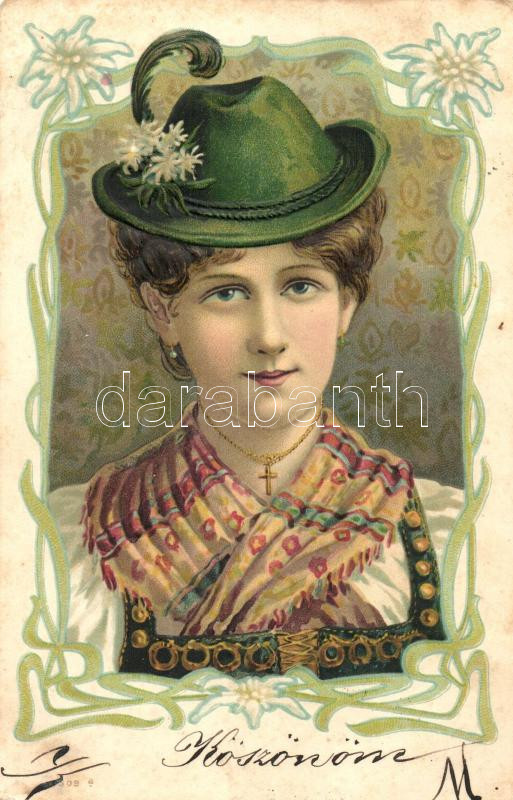 Folklore, lady, Art Nouveau Emb. litho (fl) https://www.darabanth.com/hu/403-Gyorsarveres/403.0/Kepeslapok/Folklor~1000056/Folklore-lady-Art-Nouveau-Emb-litho-fl~II1249672
