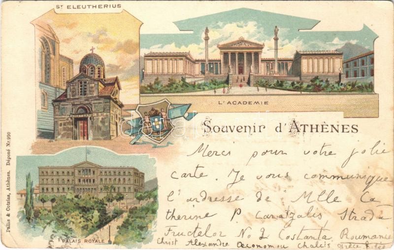 1900 Athens, Athína, Athenes; St. Eleutherius, Palais Royal, L'Ac... https://www.darabanth.com/hu/403-Gyorsarveres/403.0/Kepeslapok/Gorogorszag~1000026/1900-Athens-Athina-Athenes-St-Eleutherius-Palais-Royal-LAcademie-royal-palace-academy-ch~II2482621