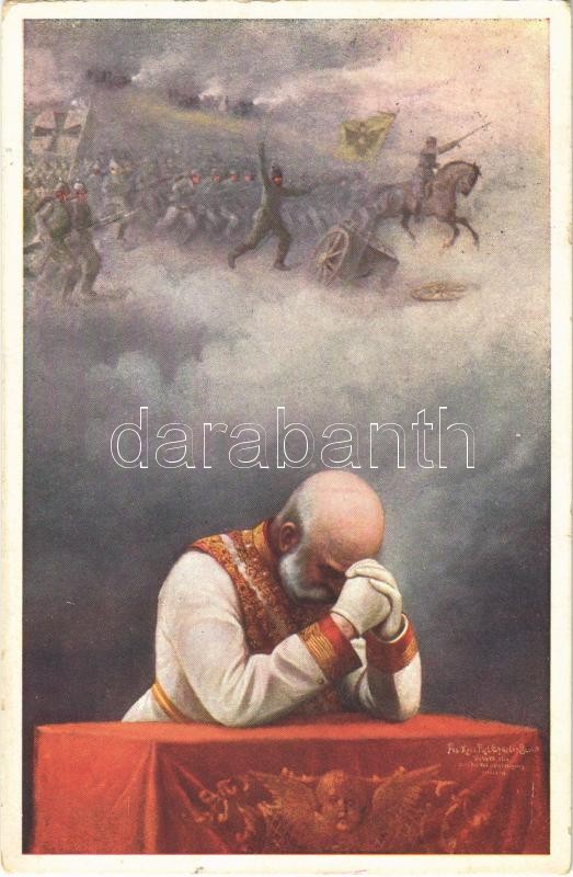 1915 Királyunk imája / WWI Austro-Hungarian K.u.K. military art postcard, Franz Joseph's prayer, patriotic propaganda. W.R.B. & Co. Nr. 189. s: Charles Scolik (EK)