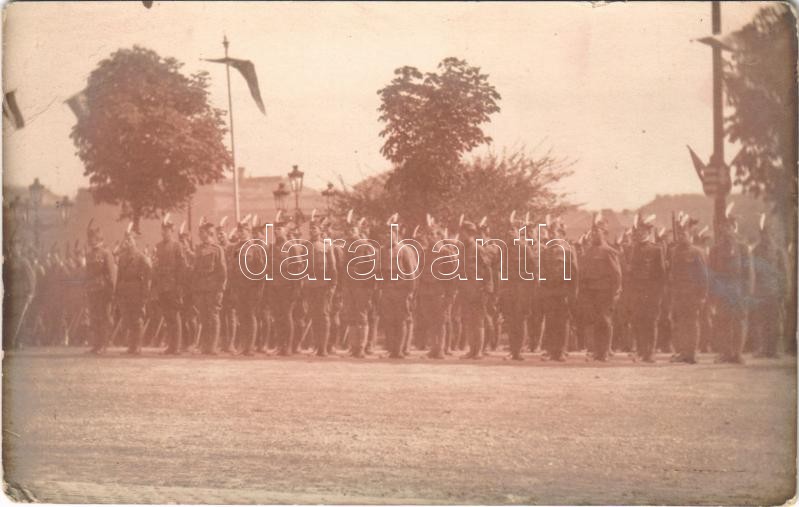 Leírás: 1920 A Fialowski-század. Darutollas leventék / Hungarian military, soldiers with crane feathers. photo (EM)