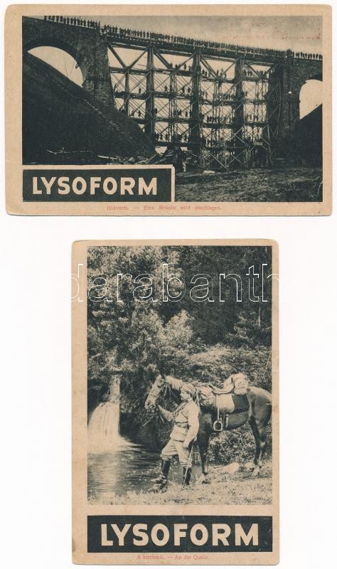 4 db RÉGI első világháborús osztrák-magyar katonai motívum képeslap Lysoform reklámmal / 4 pre-1945 WWI K.u.K. military motive postcards with Lysoform advertisement