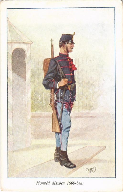 Leírás: Honvéd díszben 1890-ben. Honvédség története 1868-1918 / Austro-Hungarian K.u.K. military art postcard s: Garay (EK)